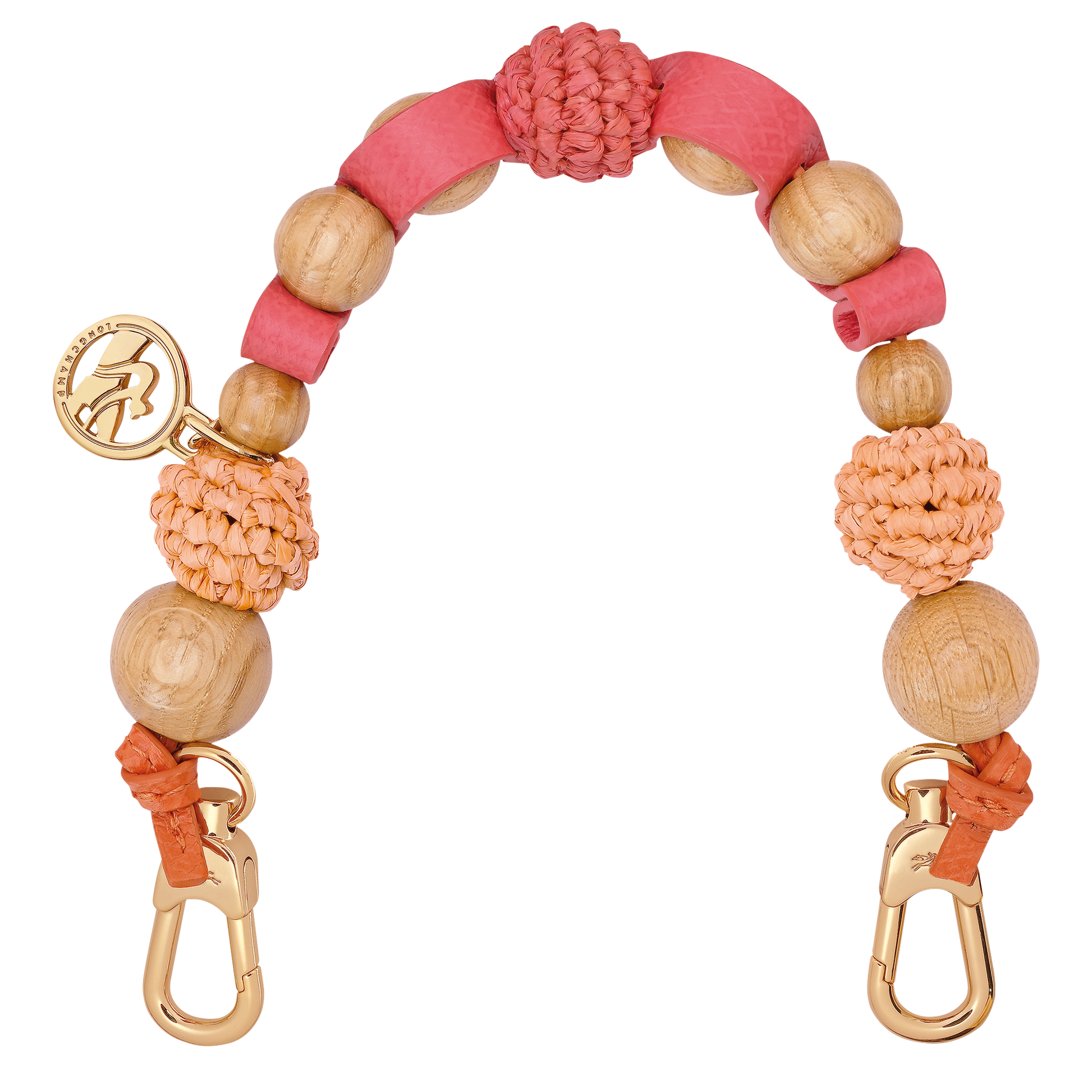 This removable shoulder strap channels coastal charm with its rainbow tones, wooden and raffia beads, and a wavy leather cord that recalls driftwood and ocean breezes.